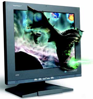 По этому же принципу работает новый LCD монитор от Dimension Technologies. Он позволяет формировать стереоскопическое изображение в реальном времени. Самое же ценное – этот монитор способен создавать реалистичное трехмерное изображение практически из любой картинки или программы.